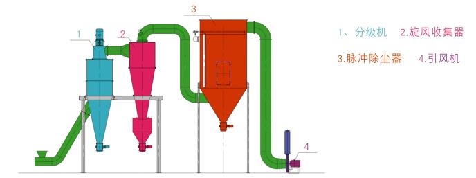 ● 可與球磨機、振動磨、雷蒙磨等粉磨設(shè)備串聯(lián)使用,組成閉路循環(huán);